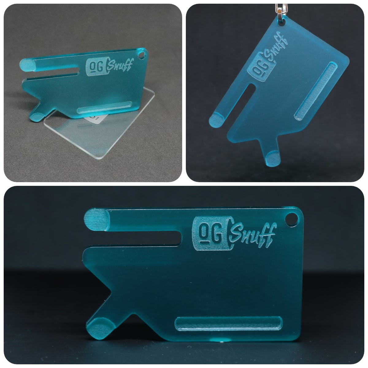 The Snuff Card is cut from high-quality acrylic and comes in a variety of funky colors. Its dimensions are: 84 x 53 x 3 mm, allowing it to fit neatly and discreetly into any wallet.