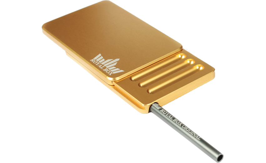 The Royal Box Gold Classic is designed to store your favorite powder discreet, elegant and clean. Thanks to its compact size, the Royal Box Gold Classic fits easily in your pocket, just like a credit card.